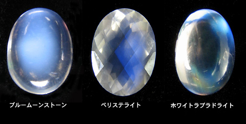 ・ペリステライト=近年発見された斜長石の一種で、ブルームーンストーンと誤称される