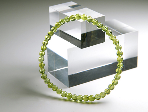 ジュエリー類の多くは、夜間に灯したローソク程度ではあまり光らないのですが、ペリドットは光の屈折率が高いおかげでわずかな明かりでも色を放つため、夜会の席などに好んで用いられる傾向にありました。