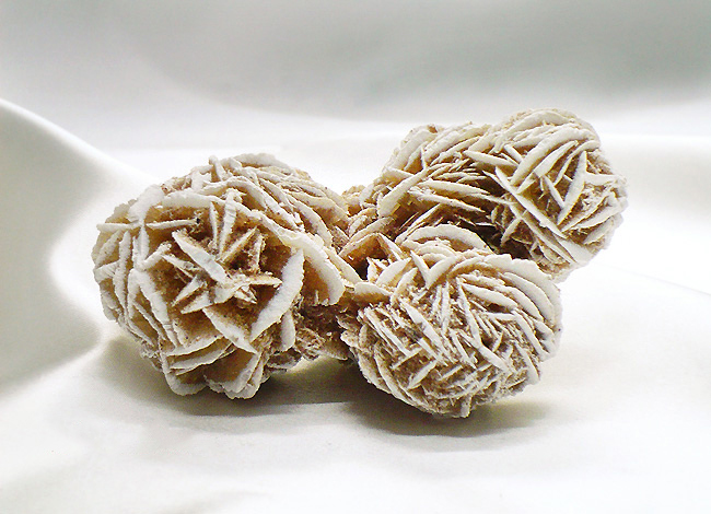石膏のうち短冊状などに結晶しており、透明なものをセレナイトと呼びます。その変種として「砂漠のバラ(デザートローズ)」があります。